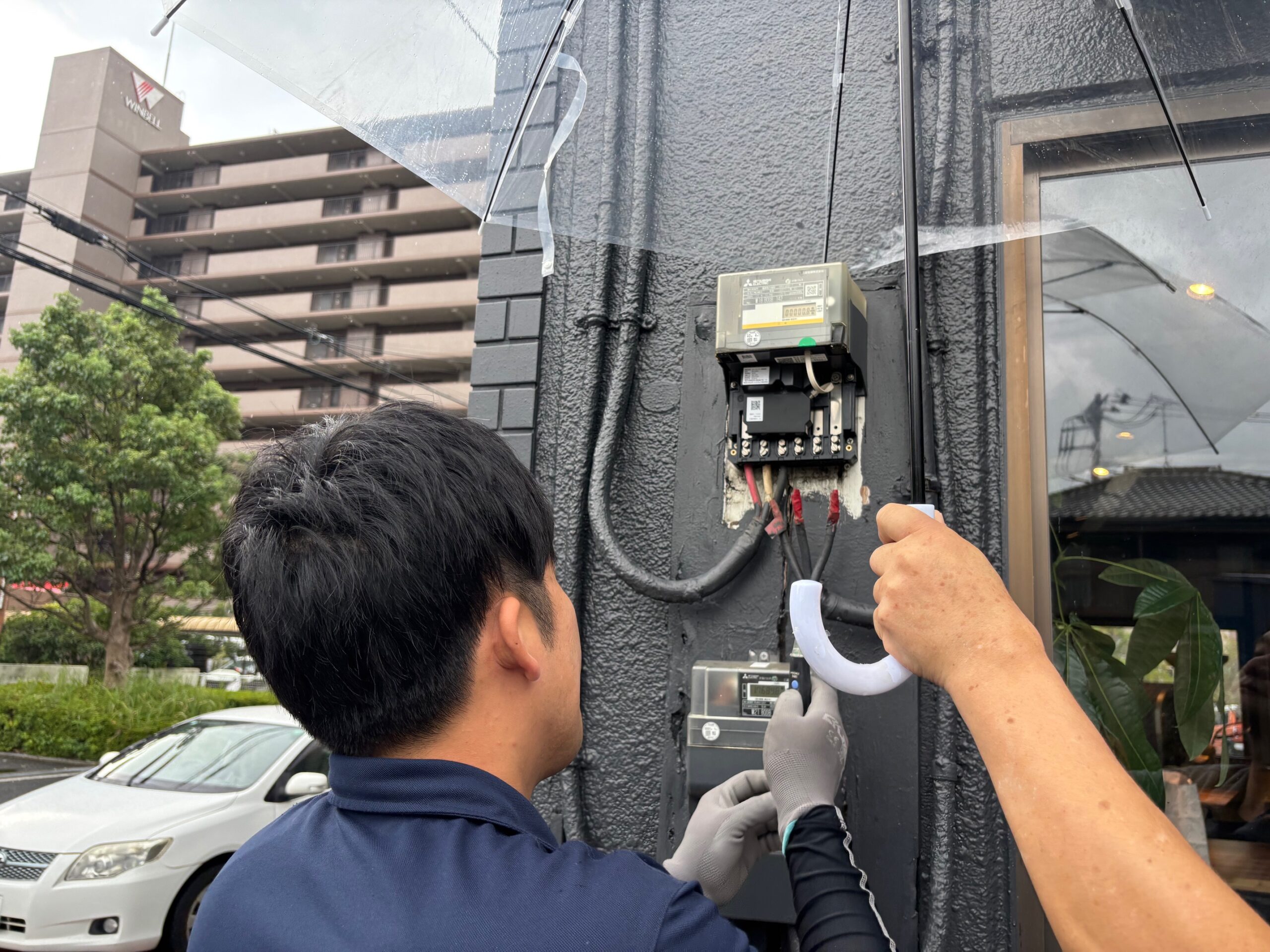 カフェの動力のブレーカー交換とメーターへの繋ぎ込みを行いました!