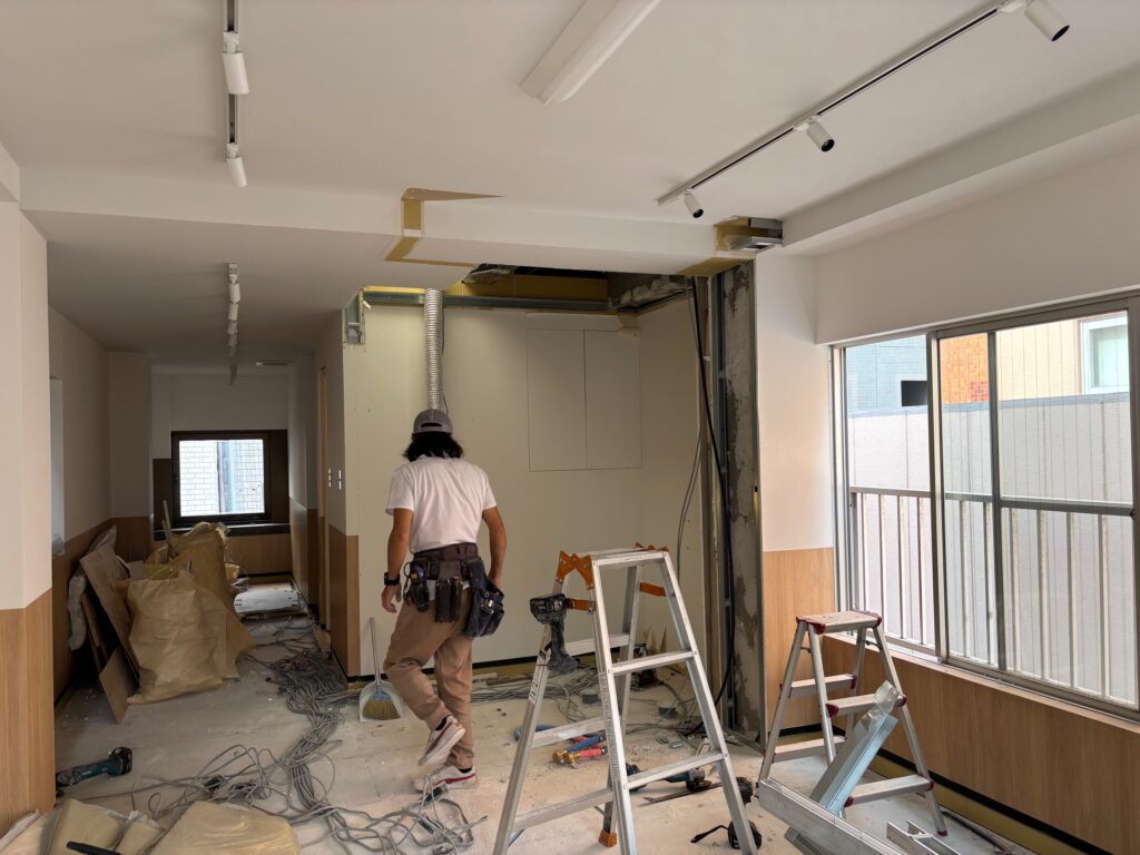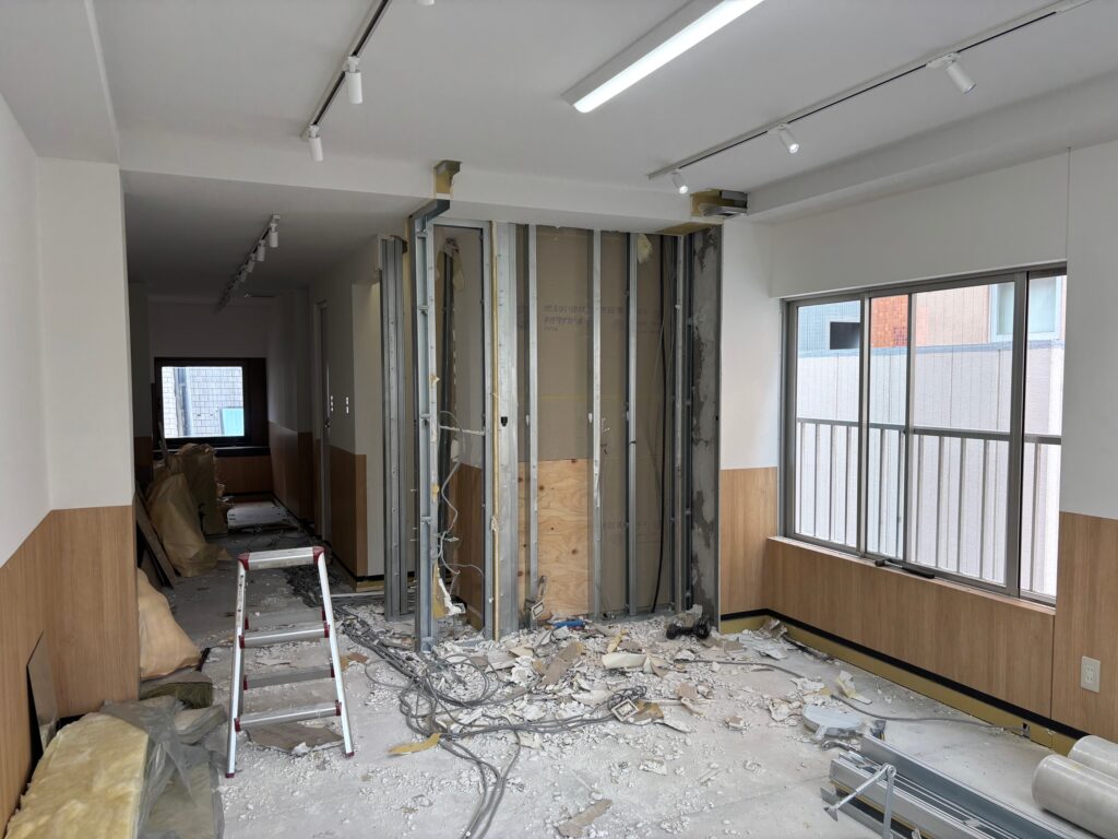 オフィスの利用スペースを増加させるために既存の男子トイレを解体、壁面も解体し利用スペースを増加させました!
