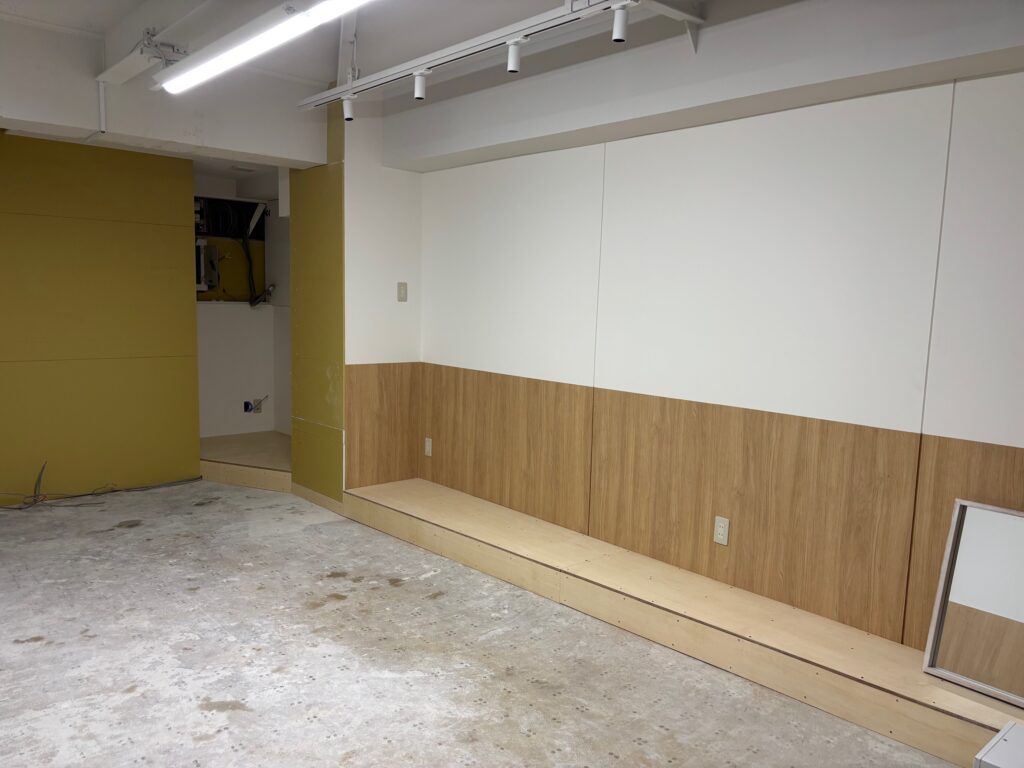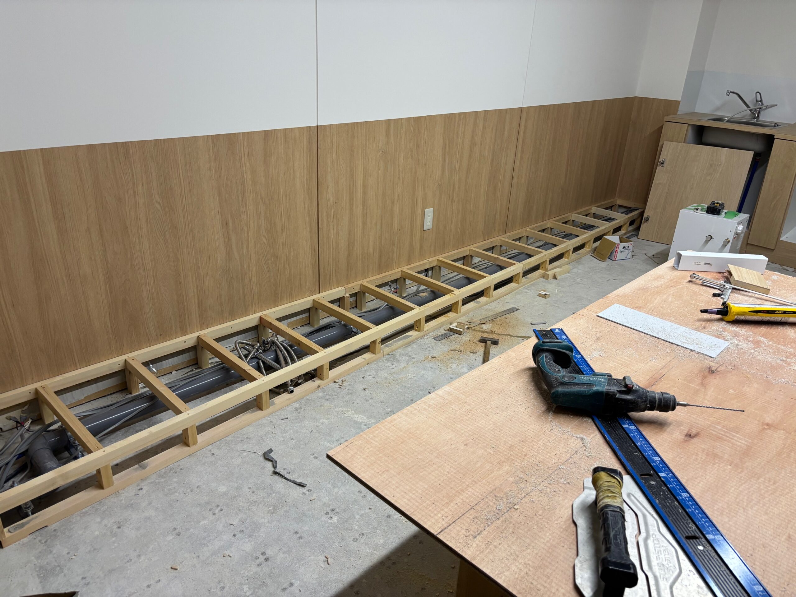 手洗い設置に伴う配管隠蔽!オフィス内部の一部に小上がりの造作をしました!!