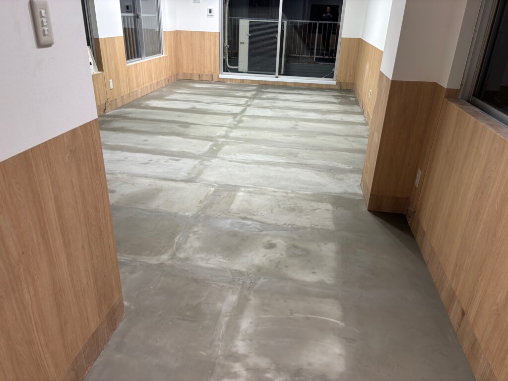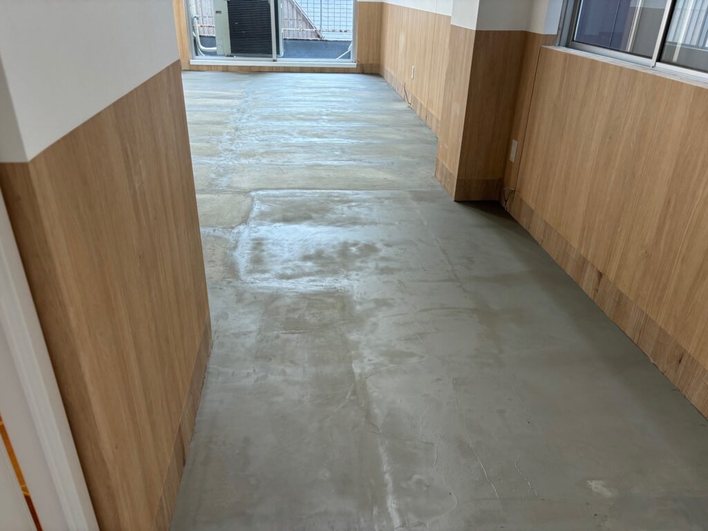 作業は乾燥も含め2日間で完了し、奇麗な下地に仕上がりました。以降はクッションフロアを施工していきます。