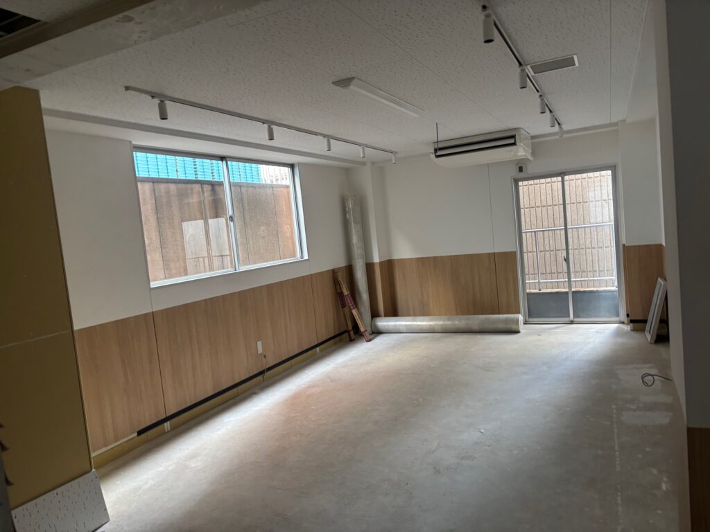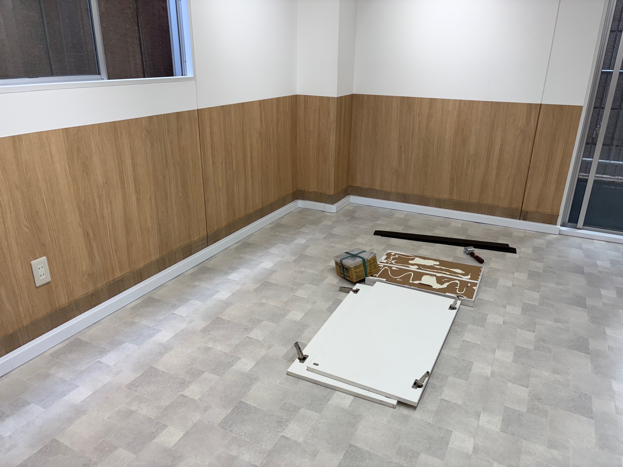 工事はビル一棟分の5フロア分を施工、極力上下階に音が伝わらないような材料を選定し施工しています。最後はH100の高めのソフト巾木を施工して仕上げました。