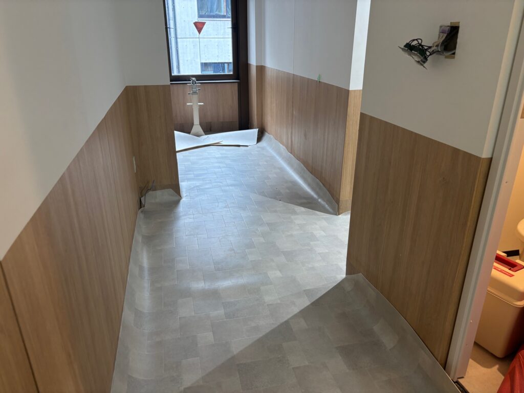 作業内容 ビル一棟分、5フロア分のクッションフロア施工(サンゲツ CM12243)