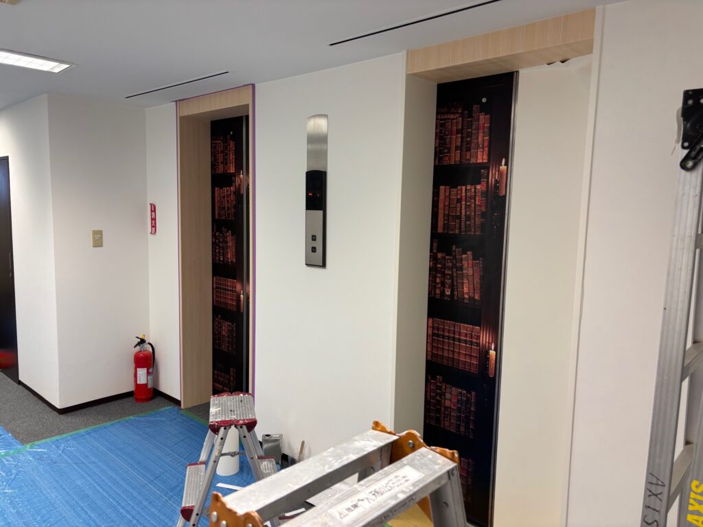 オフィスの原状回復工事に伴うエレベーターの塩ビシート施工を行いました!
