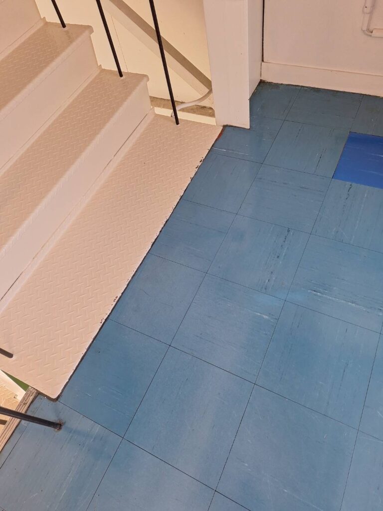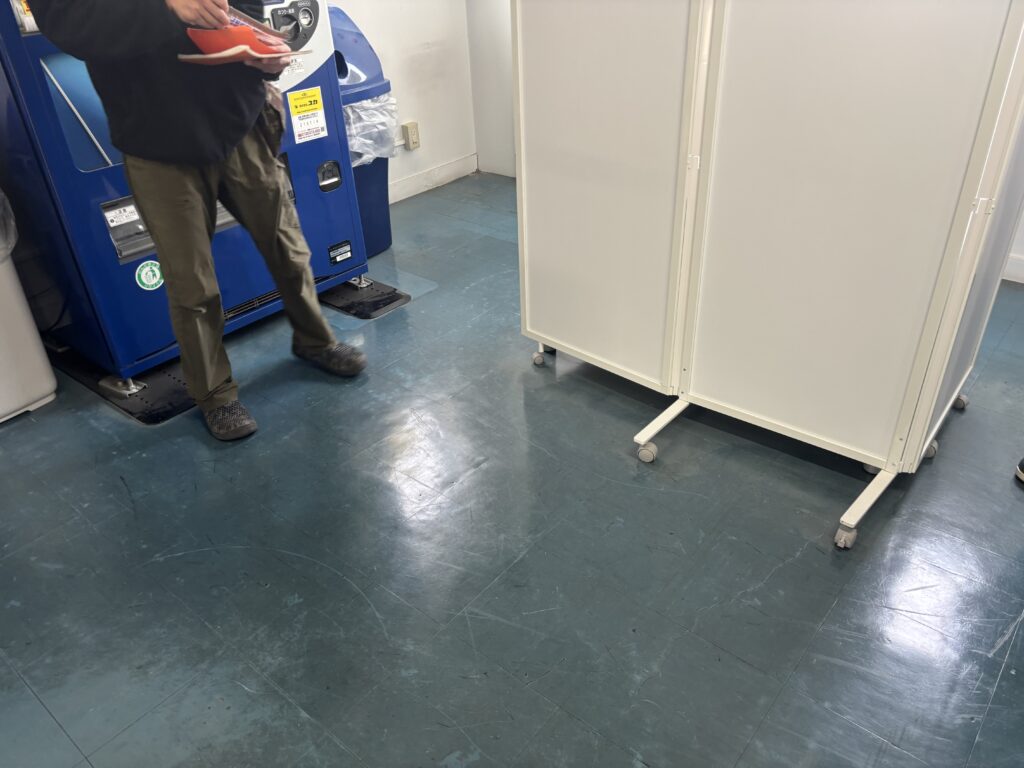 剥離作業には少々時間がかかりましたが薬剤を塗布しながら丁寧にポリッシャー洗浄し何層ものワックスを奇麗に除去。最後はワックスを二層塗布してピカピカに仕上がりました。