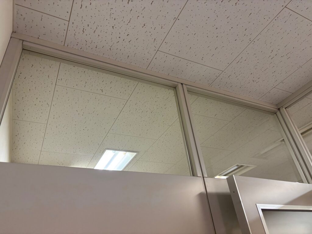 オフィス内のスチールパーティションのランマ部に設置されていたガラスを撤去しました。
