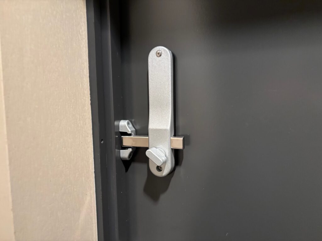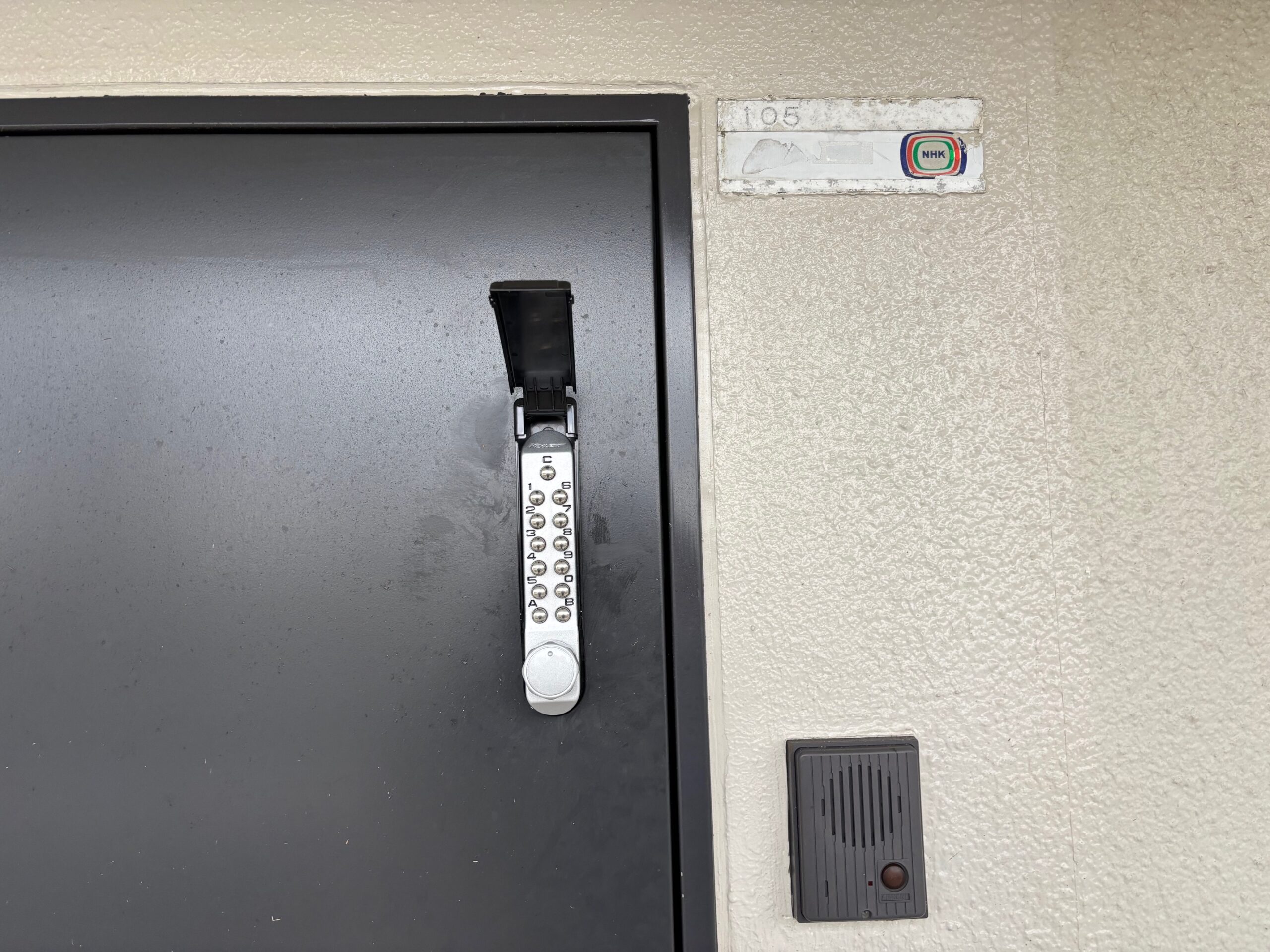 今回も行政から業務のご依頼を頂き玄関ドアにキーレックス500の新規設置工事を行いました。
